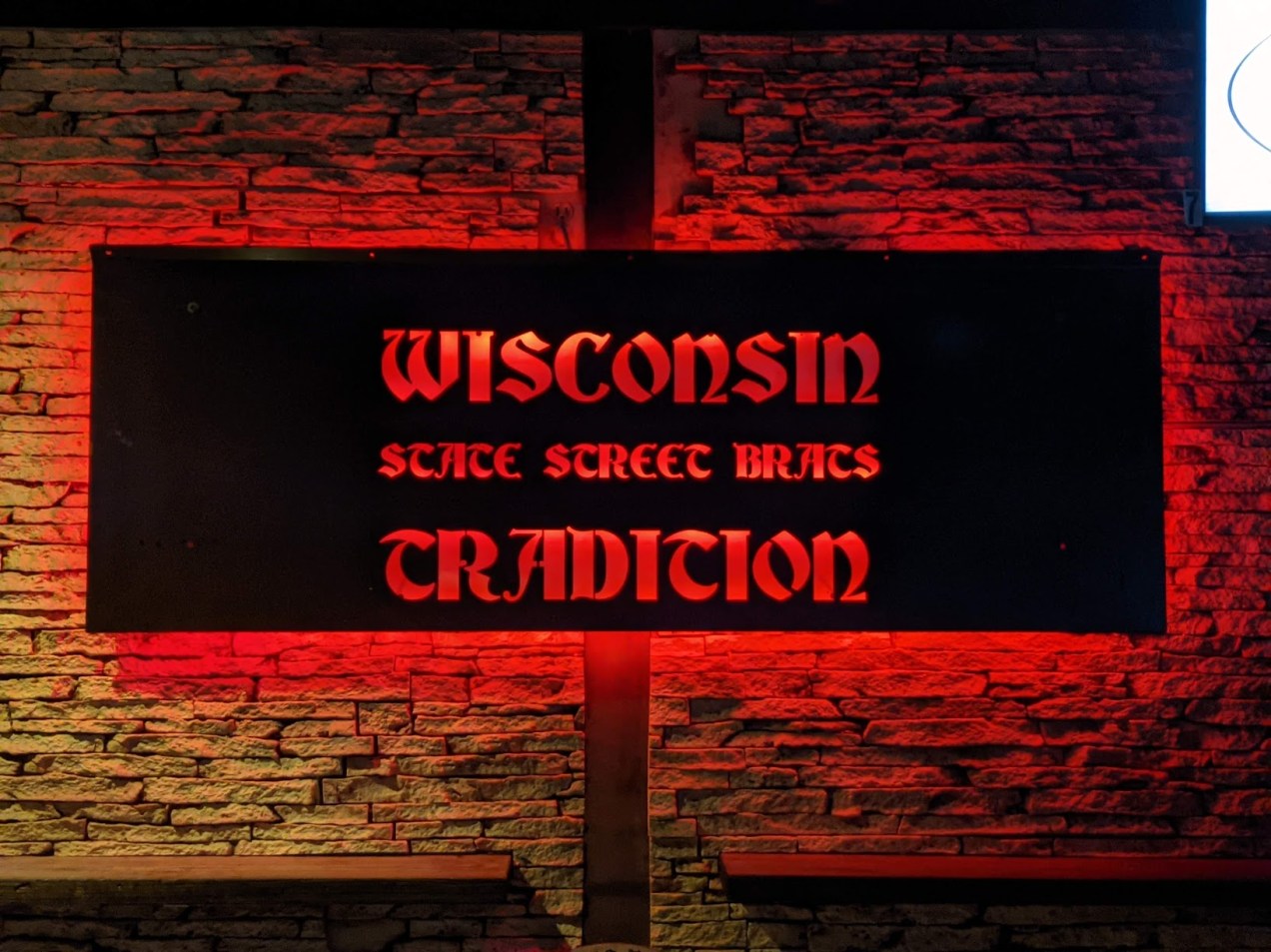 At halftime, the Bucks held on to a slim 47-43 lead. I popped up to my room to freshen up (find a fratty-looking hat), then walk over to State Street Brats, the signature “Wisconsin sports” bar for the city and campus. (Bloomington readers might find an easy explanation as thus: It’s prestigious like Nick’s, but laid out like Kilroy’s Sports).