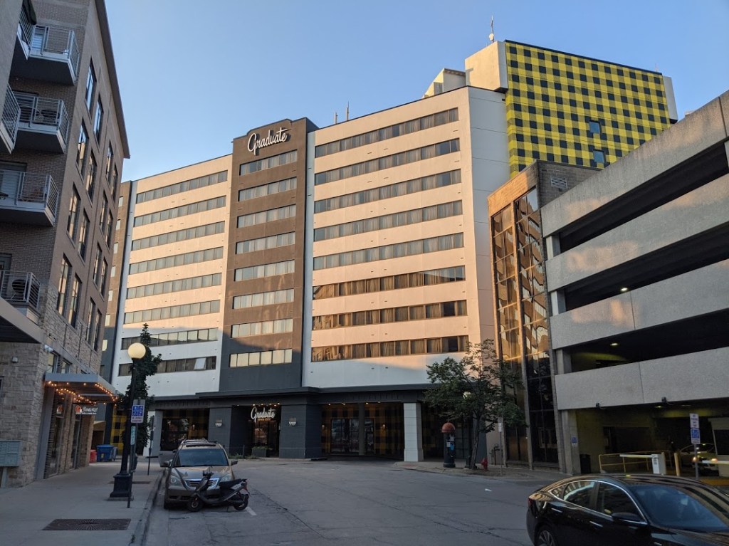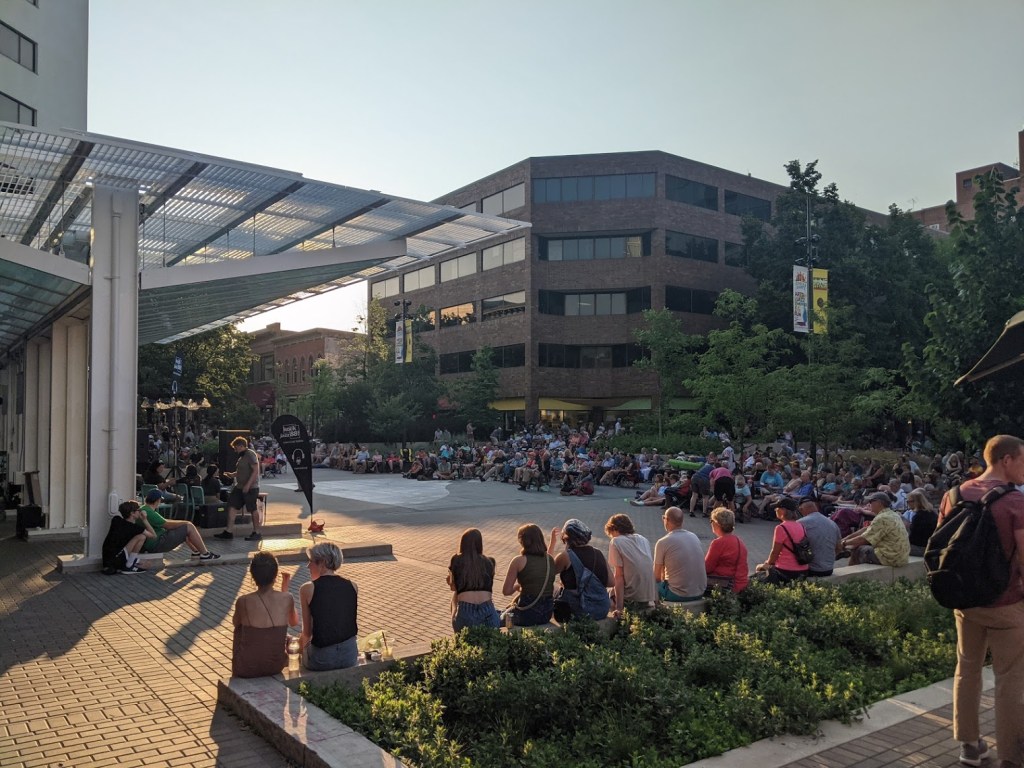 The crowd at Iowa City’s Jazz Fest, as seen from the Graduate Hotel bar (Gene’s).