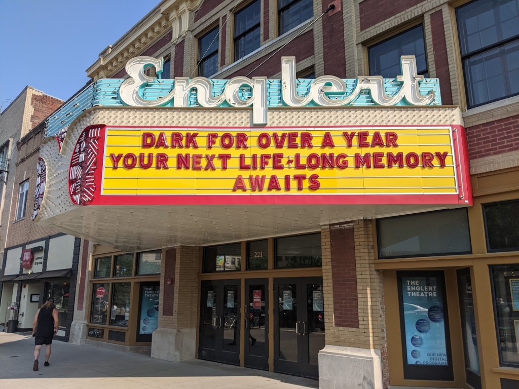 The Englert Theatre, an arts venue in Iowa City with a sign that actually made me cry.
