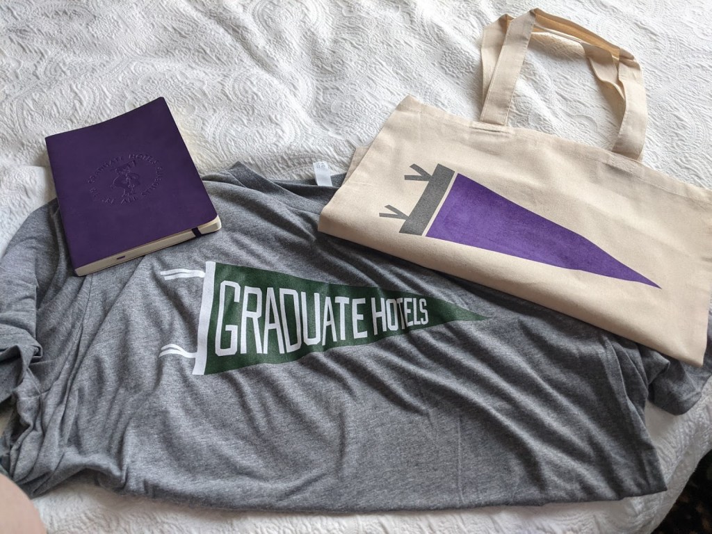 PS: The kind people behind the Graduate brand left me another swag bag upon check-in here, and I’m quite fond of the tasteful gifts. I’m a huge fan of soft, collegiate T-shirts, as well as pennant design culture, so this Northwestern-purple tote bag containing the heather tee and a soft notebook were a treat to find in my room.