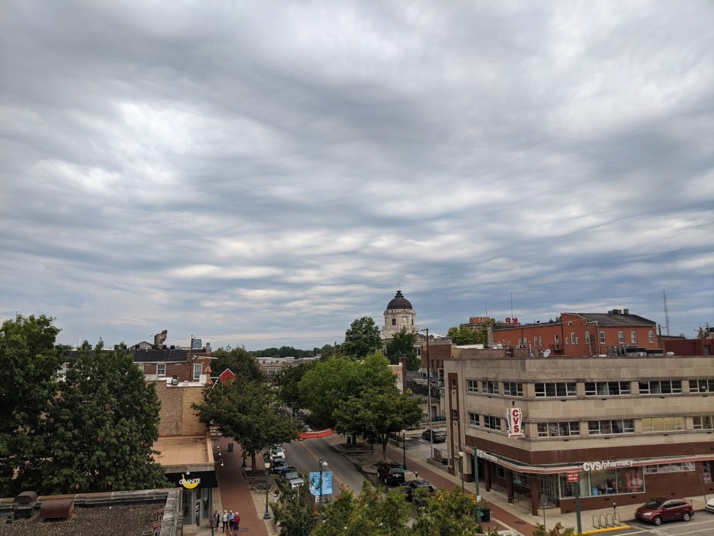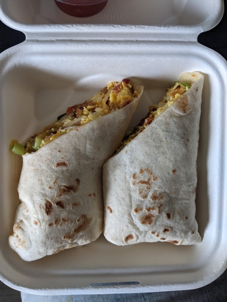 I took advantage of a complimentary breakfast card to finally try the food and brew at Poindexter Coffee, the Graduate’s affiliated cafĂ© chain. (The Poindexter Coffee in Iowa City was still closed, and I hadn’t popped in to try the local hotel restaurant — I usually don’t do that unless I’m staying there.) It’s good stuff! I had a breakfast burrito with eggs, cheese, bacon, actual hash brown potatoes, and green onions. Definitely “the cure” for the sort of weekend I had.