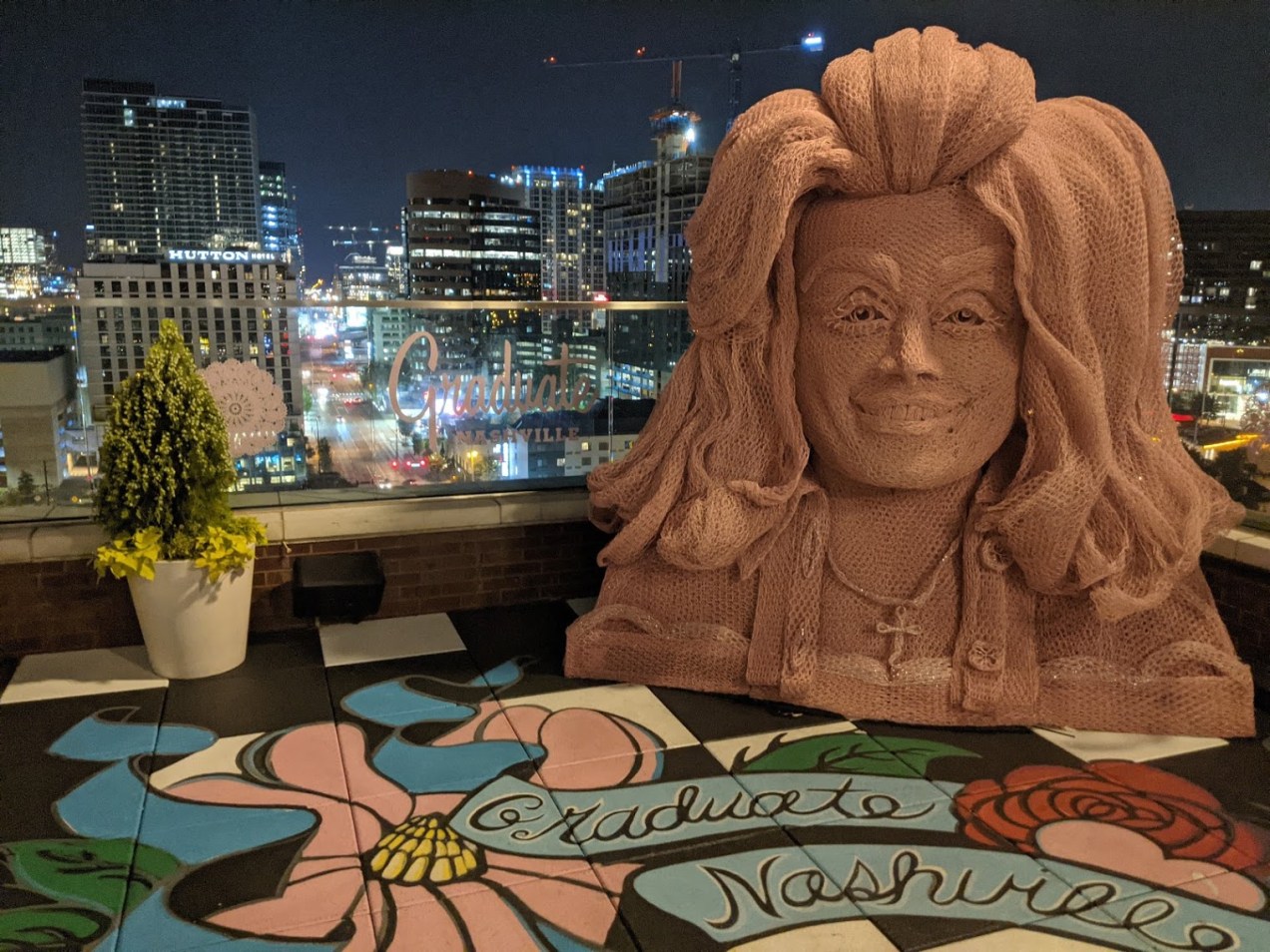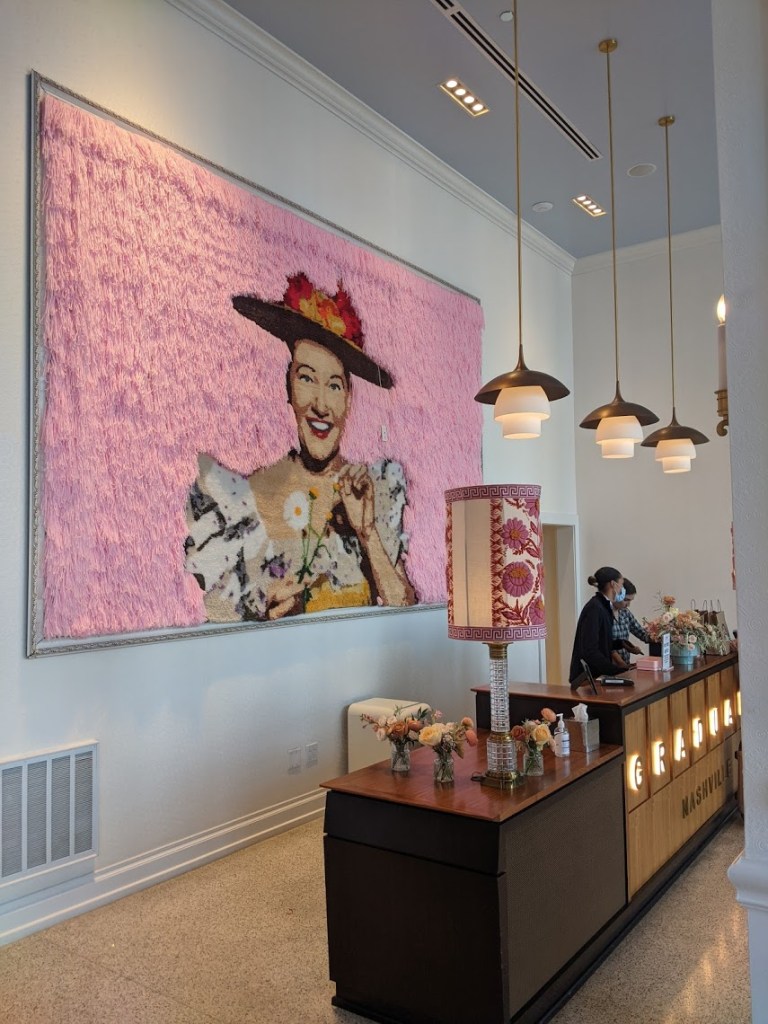 But as for the Graduate Nashville? It’s an unapologetic, 12-story shrine to Dolly Parton, the color pink, advertising, and of course, music. I’m about to hope out of the hotel room and go see downtown itself, but you should take a moment to get a load of this sexy hotel along West End Street, which feeds into Broadway. This may be the wildest place I’ve ever stayed.