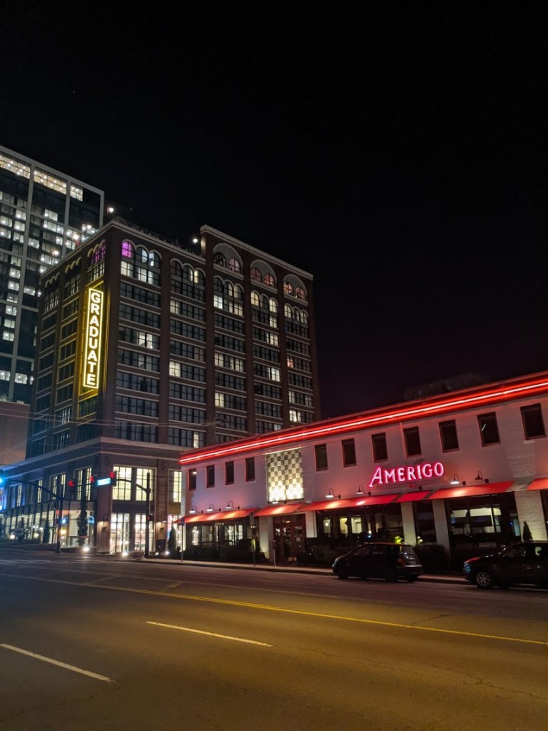 “Henrietta Red has a great menu and wines, Attaboy is a speakeasy type place for a great pricey cocktail, and I really love Bastion (they have a tasting menu and a casual bar with good cocktails and nachos). For dive-y places, depends on how dive-y you want it. Dino’s was my go-to for drinking beer out of plastic cups and having a burg. There’s a place called Springwater Supper Club that’s like the oldest bar in the city I think? They’re beer-only and are right next to the Parthenon.”