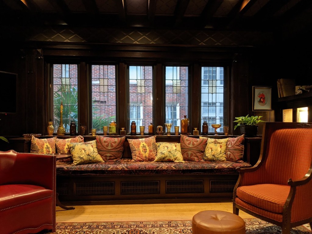 Just like in Evanston, there was a “Trophy Room” bar with antique sports memorabilia. To its right, an L-shaped parlor with a brick fireplace and a dozen wooden tables. Flanking it on both sides are two smaller conversation rooms with upholstered couches and kind window views. But my favorite room was the “Library,” which reminded me of somewhere Colonel Mustard would get bludgeoned to death by a lead pipe (and I mean that with love).