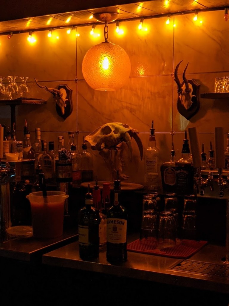 The Whig is a cool, chill place located down a long flight of stairs. It’s a basement bar with no windows, but plenty of gold lights. The inside glowed like it was King Midas’ personal watering hole.