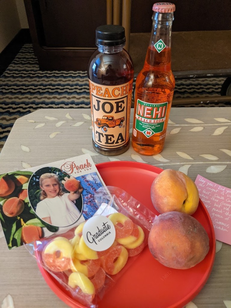 “Did you know South Carolina produces more peaches than all of Georgia?” a personalized, white-on-pink note in my room read.