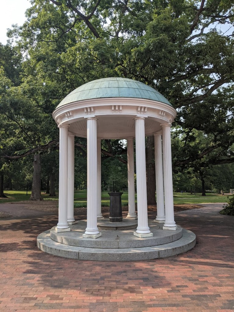 I also walked a few blocks east through campus to visit UNC’s “Old Well,” a storied drinking fountain that students visit to sip from not just for refreshment, but in hopes for good luck and better grades. I was thirsty during the walk anyways, so I made a point to have a small sip. And hey, even if I’m not a student, I think there’s something to be said about showing respect to a nearly 200-year-old public water source that’s still in operation.