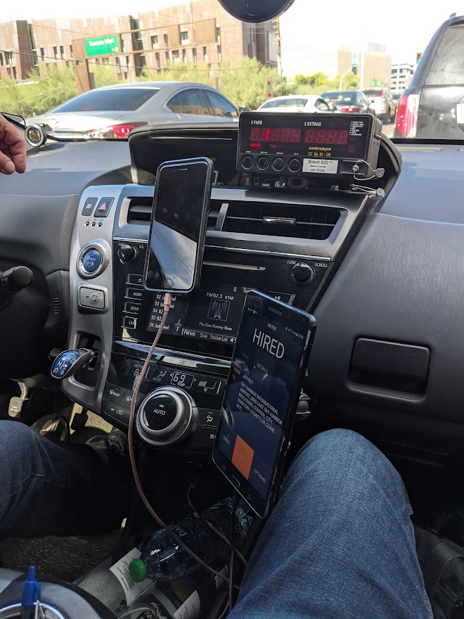 It was the first week of the month, so Neal’s schedule was already booked for the day with errand-based cab rides: The unemployment and social security checks had just come out, and folks were ready to spend their money once again in the spirit of surviving this distinct economic era. That means lots of trips to the grocery store and back, as well as elderly folks getting to the hospital. Before scooping me up at The Moxy, Neal had wrapped up a $230 tab for a gentleman running favors all over the greater Phoenix area.
