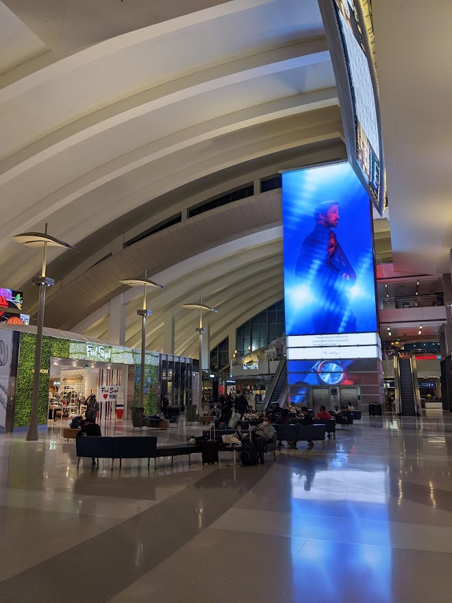 I was welcomed off the plane by a digital billboard for Rock & Brews, LAX’s version of a Hard Rock Cafe or something. KISS frontman Paul Stanley was trying to get me to buy a $12 beer, maybe order a “Backstage Brioche” burger, now that I had finally made it home to the Golden State.